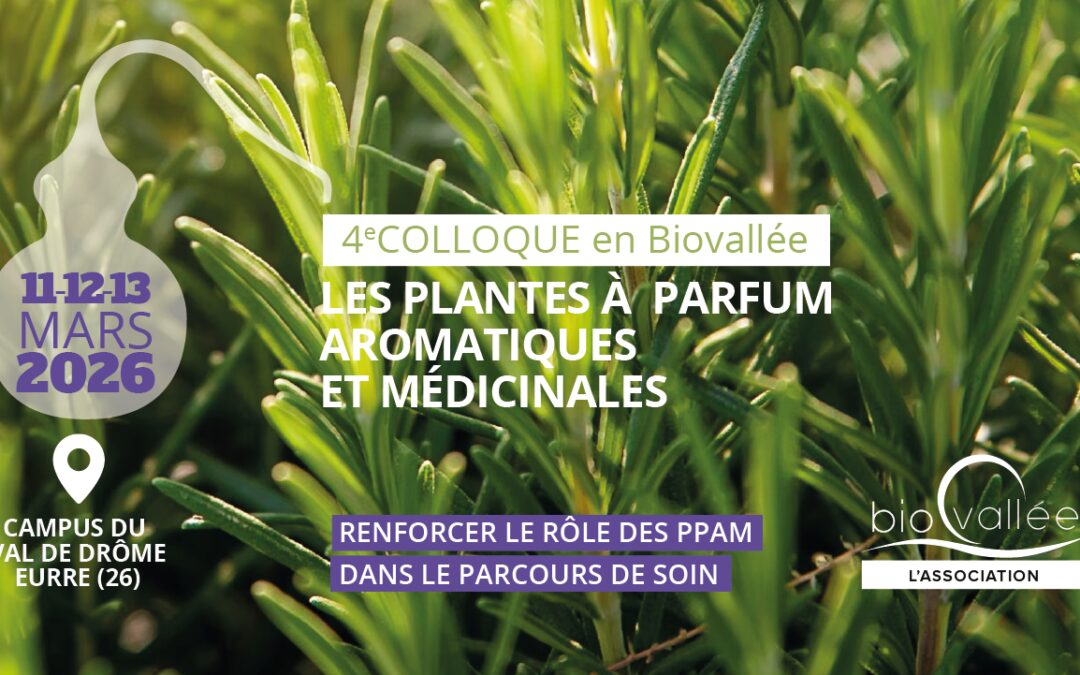 L’association Biovallée organise le 4ème colloque de plantes à parfum aromatiques et médicinales les 11,12 & 13 mars 2026 où il réunira tous les acteurs de la filière à Eurre dans la Drôme.